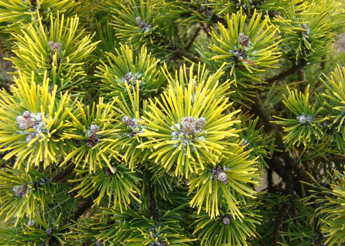 Pozostając przy złocistych zimowych barwach igieł czas na sosnę w odmianie „Ophir”. Ta odmiana cechuje się krótszymi igłami , których to długość mieści się w przedziale 2-4 cm. Wspomniana główną cechą determinującą do włączania w nasadzeniach tejże rośliny są igły zmieniające swą kolorystykę po pierwszych mrozach. Wówczas stają się złocistożółte, co fantastycznie urozmaica nasadzenie w okresie zimowym. Jest to roślina o różnorakim zastosowaniu i warto eksperymentować zestawiając ją w złożonych kompozycjach jak i jako roślinny soliter czy roślina donicowa. Rozmnażana także w formie szczepionej na wysokości 50-100cm.